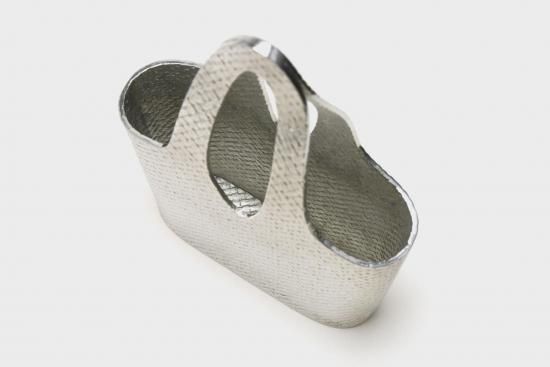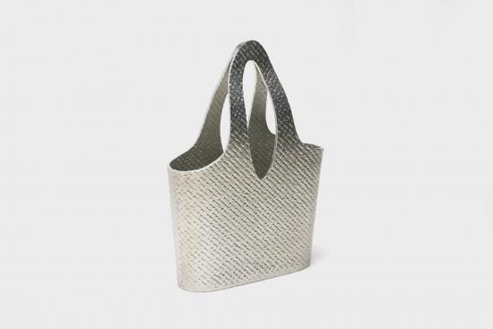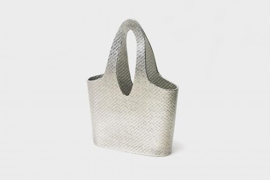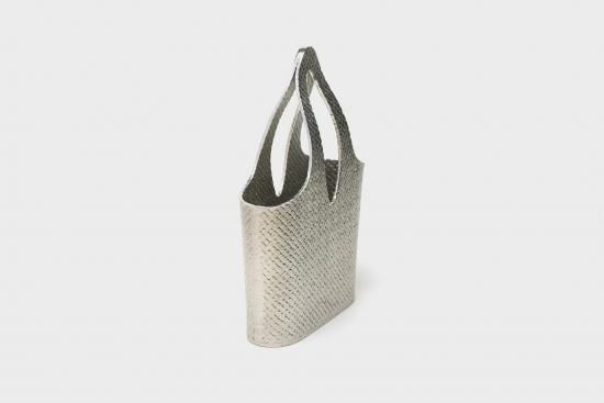 竹や木の皮で編んだ花籠をモチーフとした花入。