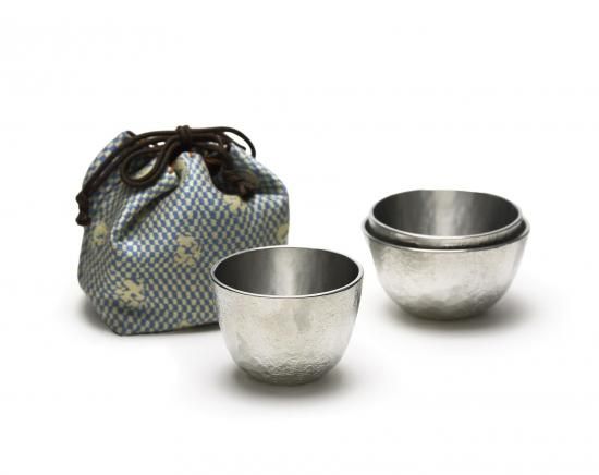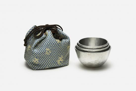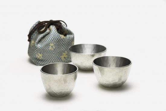 - 錫 石目三重盃 袋付:すず いしめさんじゅうはい ふくろつき