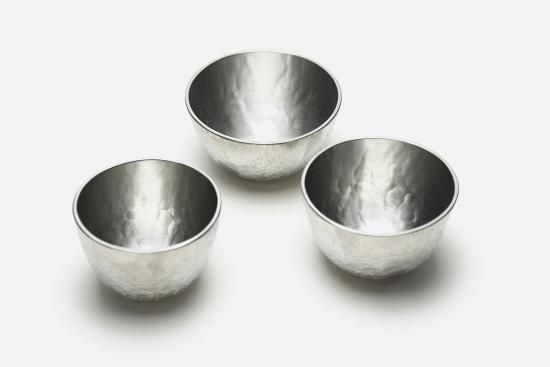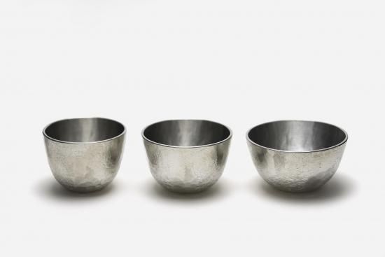 錫製の三重の盃です。どなたにもご愛用いただけるようなすっきりとした形に仕上げました。